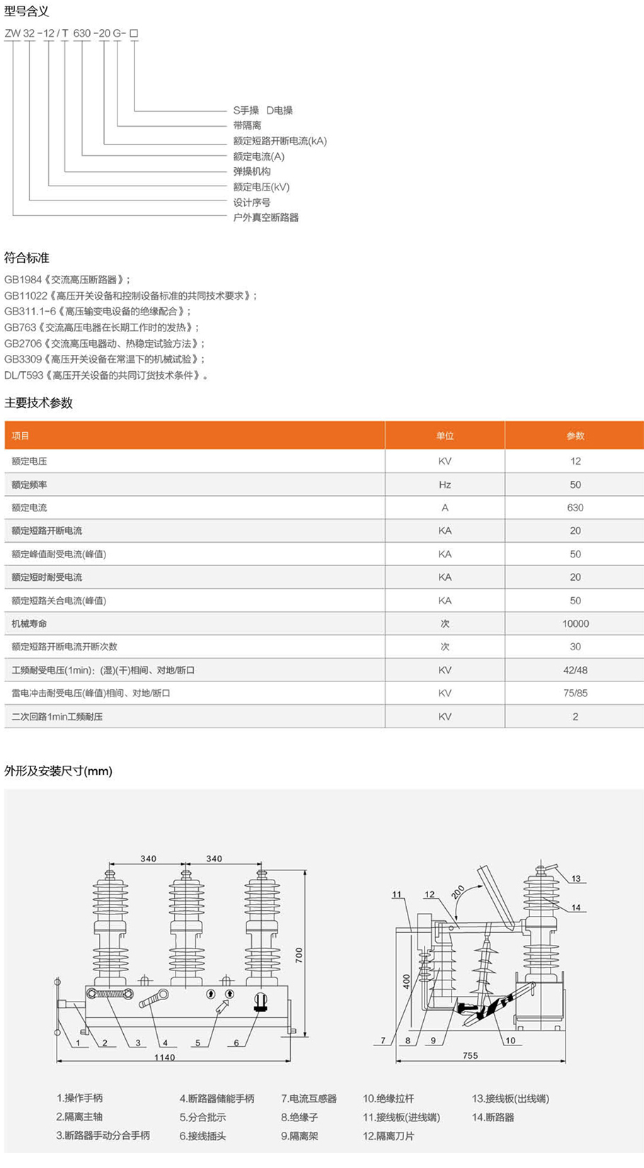 ZW32-12型盧外真空斷路器(以下簡稱斷跑器)為額定電壓12kV,三相交流50Hz的戶外配電設(shè)備。主要用于開斷,關(guān)合電力系統(tǒng)中的負(fù)荷電流、過載電流及短路電流。適用于變電站及工礦企業(yè)配電系統(tǒng)中作保護(hù)和控制之用,及農(nóng)村電網(wǎng)頻繁操作的場所。本斷路器具有體積小、重量輕、防疑露、免維護(hù)等特點,能適立較惡劣的氣候條件和污穢環(huán)境。