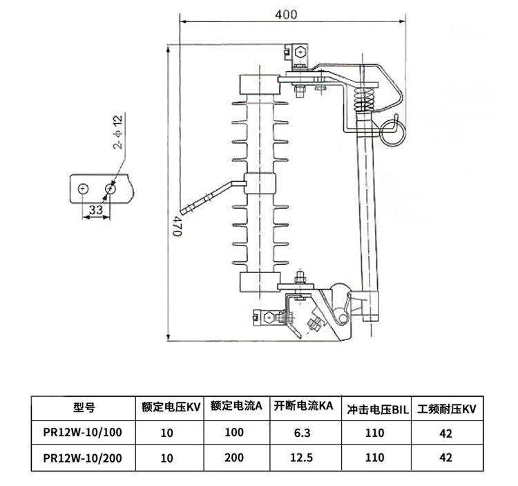 熔斷器是由基座和消弧裝置兩大部分組成,滅弧管下端可能有轉(zhuǎn)動的彈簧支架,始終詩熔絲處于緊張狀態(tài),以保證滅弧管在合閘位置的自鎖、線路與變壓器過載或短路中,熔絲熔斷,熔絲迅速重。滅弧管設(shè)計為逐層拍氣式解決在同-熔斷器上開斷大小電流的矛盾。