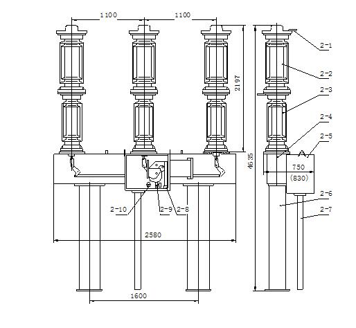 1.1 LW9—72.5/T2500—31.5型高壓六氟化硫斷路器系戶外三極交流50Hz高壓電器設(shè)備,主要用于輸變電線路的保護(hù),也可作聯(lián)絡(luò)斷路器使用。斷路器為三極組裝在一個(gè)框架上,不能進(jìn)行單極操作。