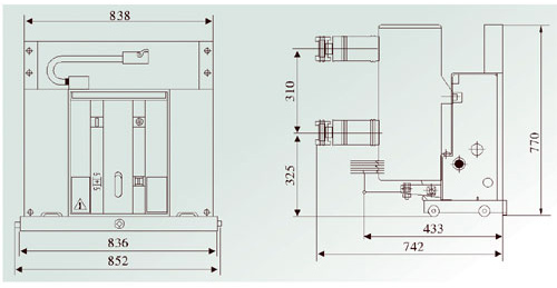 該斷路器采用操動(dòng)機(jī)構(gòu)與斷路器本體一體式設(shè)計(jì),既可做為固定安裝單元,也可配有專(zhuān)用推進(jìn)機(jī)構(gòu),組成手車(chē)單元作用。