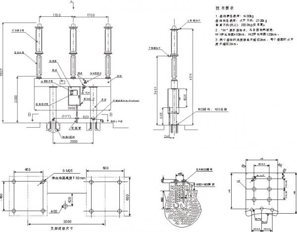 附件Ⅱ:LW38-126斷路器外形及安裝基礎(chǔ)圖 (不銹鋼外殼)